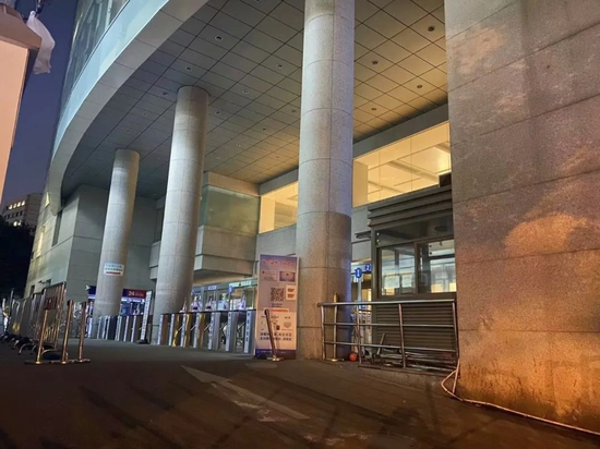 7月11日晚的上海瑞金医院门诊入口 摄/凌馨