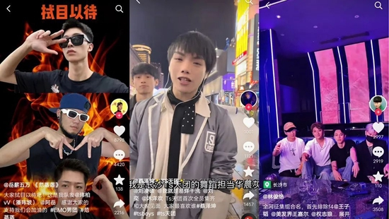 团员王二博塑造出了一个渣男人设,上演各种情感纠葛。他与ESO唯一女成员古力哪吒在一起又莫名其妙分手,之后女方发视频表示“分手了就不要纠缠”。这种博眼球、互相“喊话”视频的情感故事,来来回回千遍也仍然吃香。