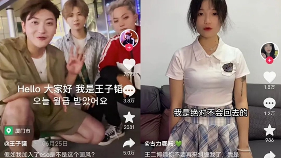 因为鹿哈与黄子诚,盗版男团ESO收获了不小的关注,来自于团体的流量也反哺到了ESO其他成员王二博、易烊干洗、王俊卡、鹿啥、权酷龙身上。即便他们与正主长得并无多少相似之处,但也积累了几万、十几万的粉丝数。
