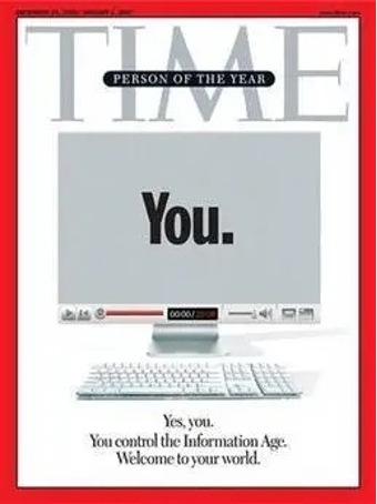 当年《时代周刊》的年度人物是“你”,指的是使用用户分享网站的一众网民,副标题则是“没错,就是你。信息时代由你掌握。欢迎进入自己的世界。”