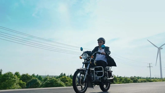 图片说明:严成和喜欢开摩托车时的自由感觉