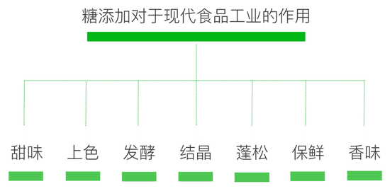 食品工业已经高度发达,我们可以很容易地获得高密度、高吸收效率的食物,然而写在基因里的对甜味的追求却还没有适应当下的饮食结构。我们吃下这么多的糖,因为现代食品饮料里糖几乎无处不在。糖作为食品中重要的添加剂,不断展示出利于食品加工和品质提高的重要作用。