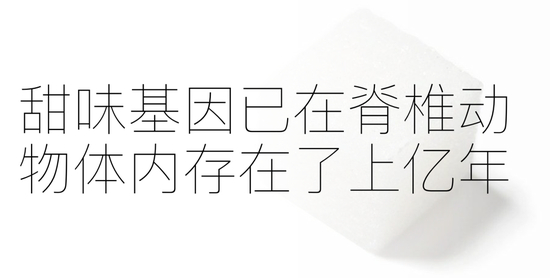 我们把甜味机制说得再详细一点。味蕾是舌头表面下的一簇细胞,通过称为“味觉毛孔”的小开口暴露在口腔内部。味蕾中的不同亚型细胞对特定的味觉品质有反应,酸咸苦甜鲜。反应方式是这些亚型细胞产生对应的受体蛋白,当食物在口腔中经过时,受体蛋白可以感知食物的化学成分。负责检测甜味的亚型细胞产生的受体蛋白称为TAS1R2/3,用于检测糖。检测成功后,便会向大脑发送神经信号,你就感受到甜了。编码TAS1R2/3受体蛋白的一对基因是TAS1R2和TAS1R3,他们在人类以及大多数脊椎动物体内存在了上亿年,如猴子、牛、狗、蝙蝠、蜥蜴、熊猫、鱼等。在自然选择中这一对基因没有衰退,今天要戒掉甜当然不容易。