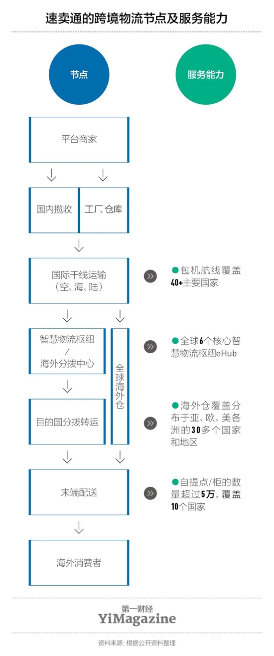 速卖通的跨境包裹通过空运直飞海外目的地国或者通过菜鸟海外物流枢纽进行转运,例如货物从杭州登上菜鸟包机飞往比利时列日eHub,再从列日分拨到欧洲各个国家。目前“5美元10日达”物流产品,已覆盖西班牙、法国、荷兰、比利时、英国、德国、葡萄牙等全球20个国家。