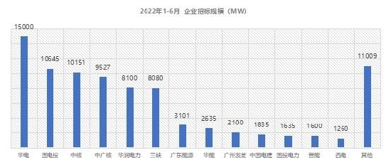 从上半年市场情况看,招标企业前十位均为央国企,合计招标量已达71.1GW,占比82.1%。其间,华电以15GW的招标规模处于领军地位,国电投等五家央国企以8-10GW的招标规模处于第二梯队,广东能源等7家地方能源企业高于1-3GW的招标规模处在第三梯队。