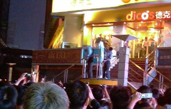 2010年在成都一家快餐店门口,一群青年把汉服当做和服示众烧毁(图片来源:网络)