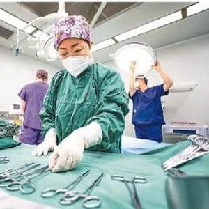 5月12日,在河北省唐山市海港经济开发区海港医院,护士在手术室准备手术器械。刘满仓摄(新华社发)