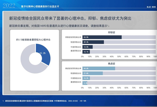 来自《中华精神科杂志》2020年对国内14592名普通民众的一份调查显示,新冠疫情对约1/3的调查者带来了较大的心理冲击,其中焦虑症阳性检查率占比达到了44.6%。