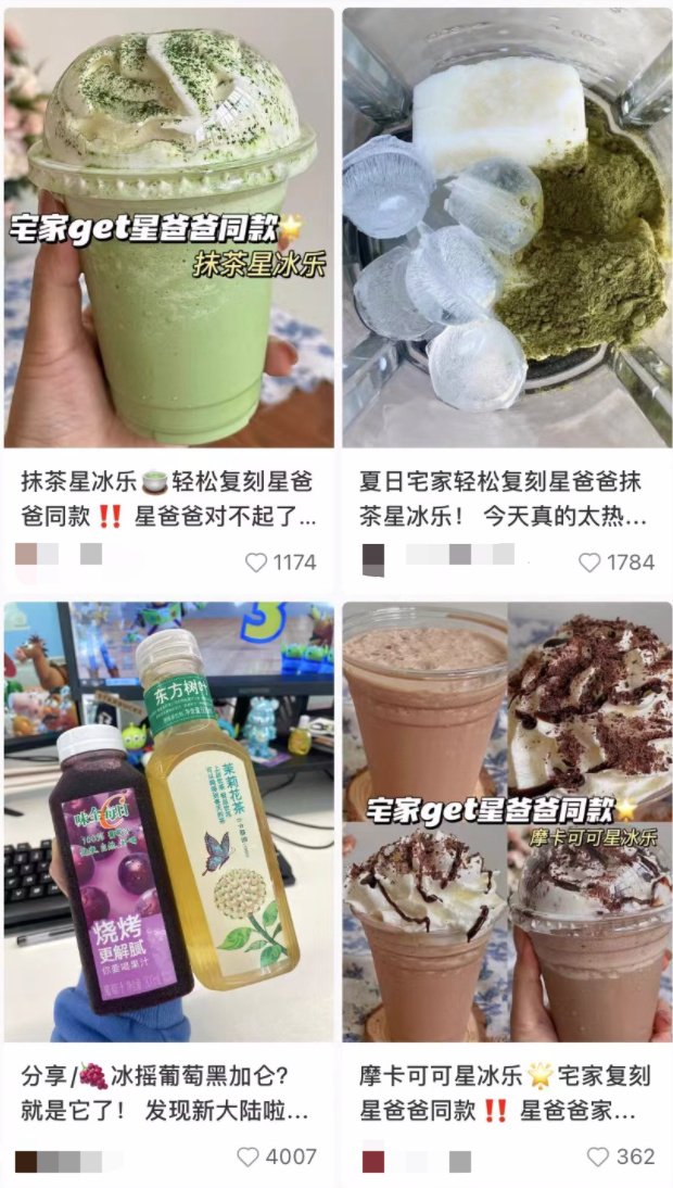 有人连一杯奶茶钱都省了。年轻人在社交平台上挖掘星巴克、瑞幸、一点点的复刻配方,扒出同款配料,虽然做不到1:1复刻,但至少经济实惠,外加一点手工自制的成就感。