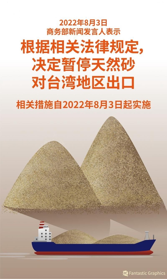 8月3日,据商务部官网消息,针对有企业关心的对台湾地区出口天然砂政策是否有调整的问题,商务部新闻发言人表示,根据相关法律规定,决定暂停天然砂对台湾地区出口。相关措施自2022年8月3日起实施。那什么是天然砂?大陆暂停对台湾地区出口天然砂,对台湾又有什么影响呢?