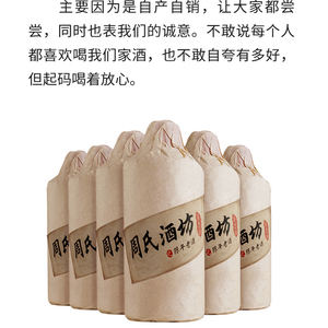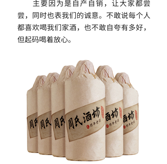 “老爸勤勤恳恳一生,酿酒56年,能让他特别开心的事,就是更多酒友尝到他酿的美酒”,在天猫上,6瓶一箱的周氏酒坊贵州酱香型陈年老酒只需要168元。这款出自“酿酒56年”家族酿酒企业的产品来自贵州厚礼酒业有限公司,现在名为“贵州黔王酿酒有限公司”,其法定代表人王正礼旗下有多家酿酒企业,注册时间最早的为2010年。