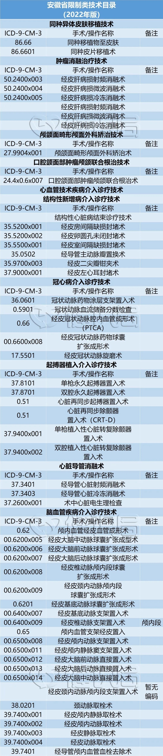 安徽2019年就列入限制的心血管介入、脑血管介入、人工耳蜗植入、按照四级手术管理的内镜这四项技术依然被列为限制。同时,增加了一项,即肿瘤消融术。