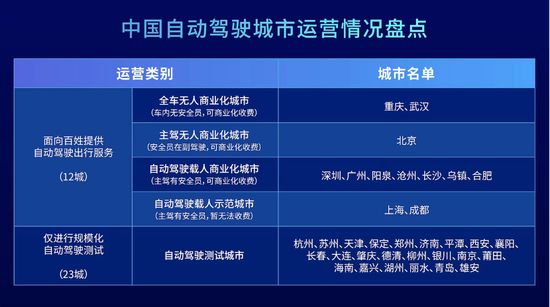 当然,不只是重庆与武汉,中国面向百姓提供自动驾驶出行服务的城市已经达到12城之多,进行规模化自动驾驶测试的城市数量也已经有23城之多。