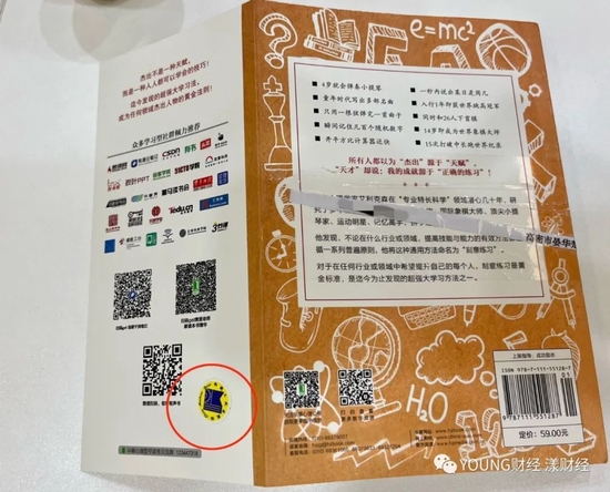 图中红圈处是防伪贴纸,盗版书籍把它直接印刷到封底上了 图/YOUNG财经