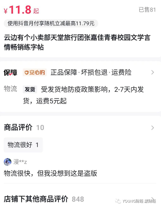 YOUNG财经在抖音店铺发现的盗版书以字帖名头上架售卖 图自抖音店铺截图