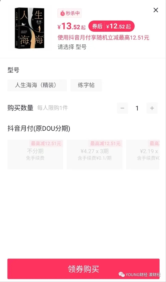 YOUNG财经统计,万*斋在抖音平台上共销售超80万本书,仅统计销量超1万本的销售额,万文斋抖音上销售额就超过了两千万。