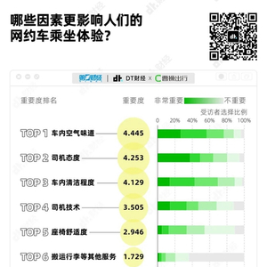 重要度综合排位靠前的“车内空气味道”和“车内清洁程度”都指向车内环境。对于网约车乘客来说,嗅觉和触觉的生理感官体验是影响乘车体验的最重要因素。
