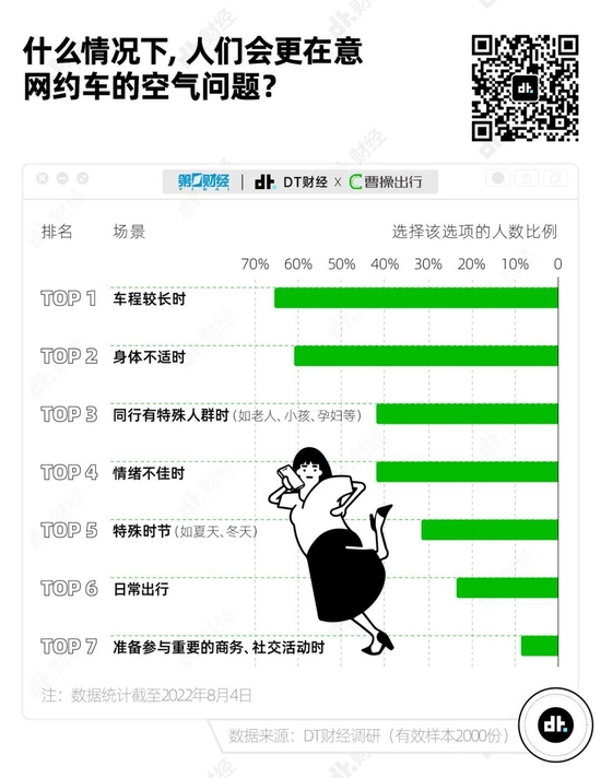 “车程较长”是大家最在意网约车空气问题的场景。倘若车内空气情况不佳,较短出行还能安抚自己暂时忍受,远程出行就只能是漫长的煎熬。