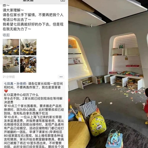 然而,造成上述狼藉一片的根因,并非是家长们无理取闹,而是早教机构北京七田真陆续关门、跑路之后,家长们维权无门的无奈之举。