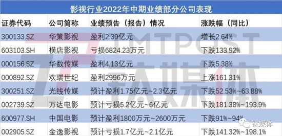 不过,从上半年行业大部分公司的业绩表现来看,说行业回暖还为时尚早。据钛媒体APP不完全统计,今年上半年,影视娱乐公司亏损居多。