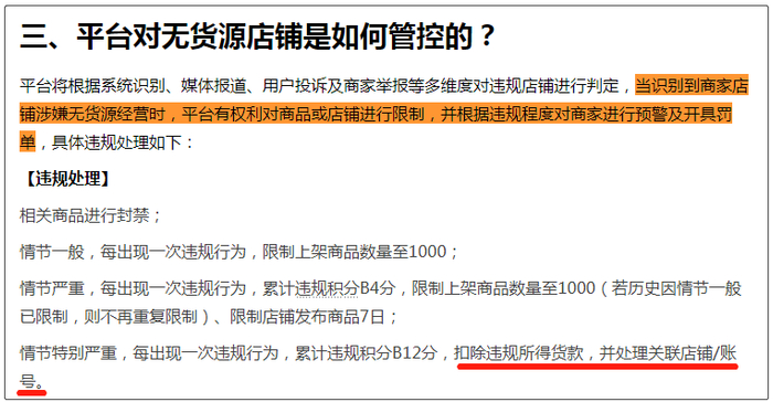 据吴鑫介绍,实际上,在对商家的管理上,部分电商平台还会规定商家只能通过平台内部系统下单发货,监管店铺是否存在分散的发货地等方式,限制不规范的无货源店铺。