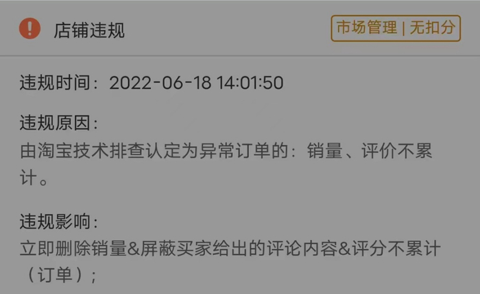 然而,3天后,小志的网店管理后台收到淘宝平台的警告,那11张订单存在异常,被认定为店铺违规。而这时,培训班的销售及老师,已对小志的反馈开始“爱理不理”。