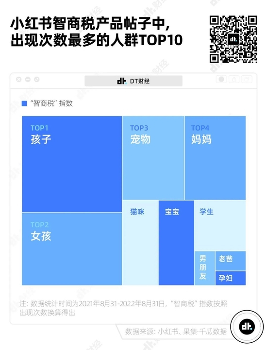 DT财经统计了智商税笔记中被提到最多的对象,孩子、女孩、宠物是最容易被收缴智商税的三大群体。