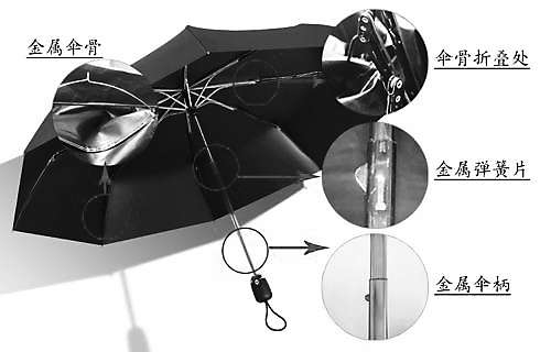 广东省市场监管局表示,相关致伤原因为:锐利的伞骨折叠处划伤手部;金属弹簧片划伤手部;金属伞柄断裂导致锐器伤;金属材质的伞架脱落对人体造成伤害。