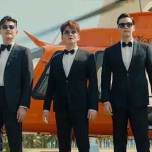 一个婚礼现场,一辆直升机落地,四个戴墨镜穿西装的男人相继从直升机上下来,带着微笑走向旁边的四位异国少女……不需要更多解说,光是直升机螺旋桨带来的风力就把“炫酷”的氛围吹到了最大。