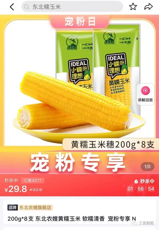 但让大量网友不满的是,农嫂除了宣传上蹭事件热度,更是把和东方甄选玉米一样的产品价格以3元多每穗售卖。