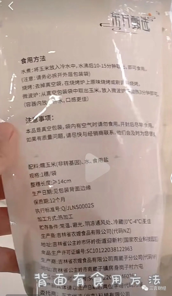 根据网友上传的评测视频显示,东方甄选鲜食玉米的供应商为吉林省农嫂食品有限公司。