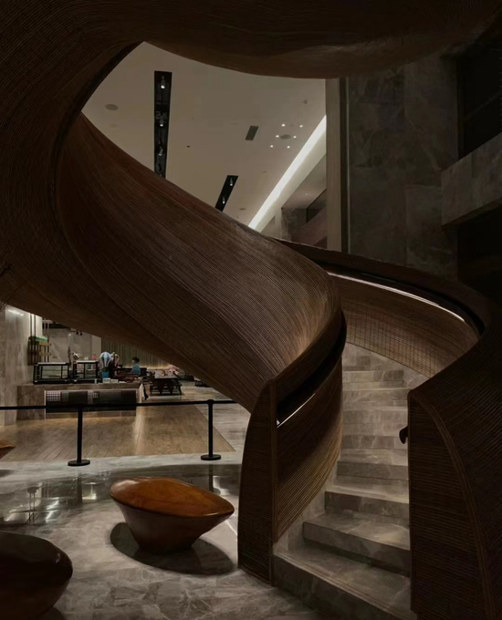 ▲ 汕尾五星级酒店内的旋转楼梯,可供客人拍图。图 / 受访者供图