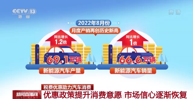 国家税务总局数据显示,今年1—8月份,新能源汽车免征车辆购置税494.6亿元,同比增长113%,进一步促进新能源汽车消费。