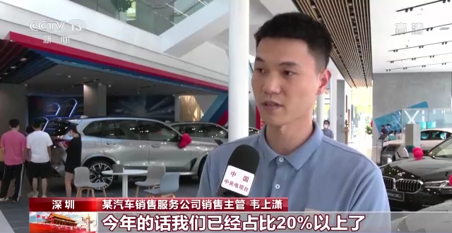 某汽车销售服务公司销售主管 韦上潇:今年的话我们已经占比20%以上了。(我们)从单一的一款纯电动车,到现在的一共有5款纯电动车在销售了。