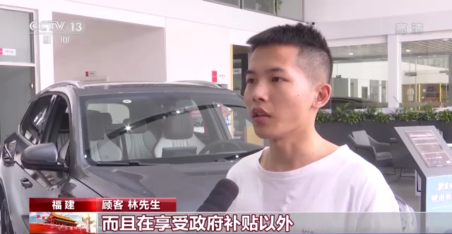 顾客 林先生:新能源车比较环保,而且在享受政府补贴以外,它还享受比如说像车船税等 “叠加”优惠,相比同价位燃油车来说,其实我觉得(新能源车)性价比高得多。