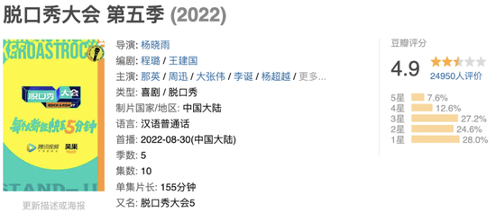 4.9的豆瓣评分,是《脱口秀大会》史上最差成绩。