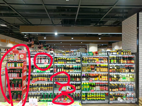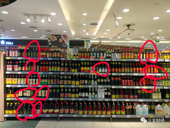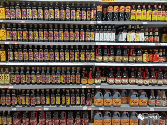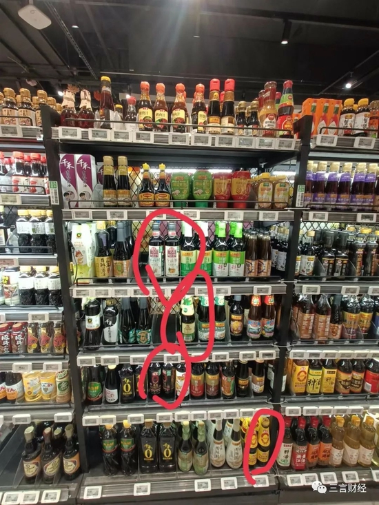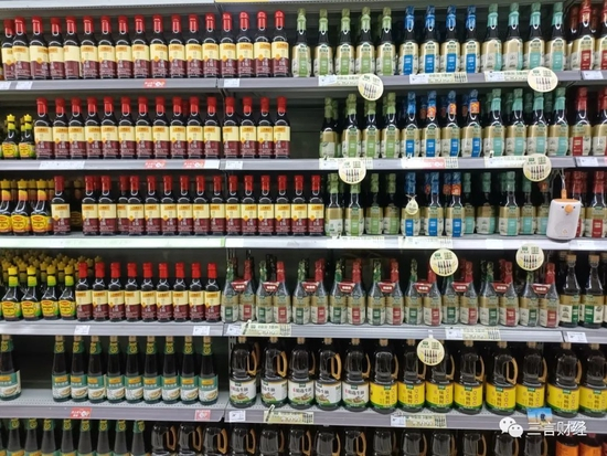 这家超市的酱油占了三个货架,有海天、李锦记、太太乐、六月鲜、千禾、欣和、珍选几个品牌。