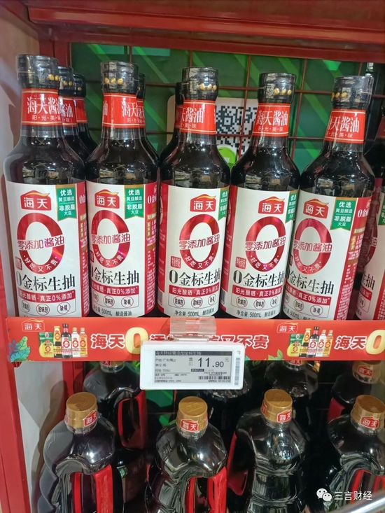 在这家超市里,三言财经没有看到0添加的海天酱油。