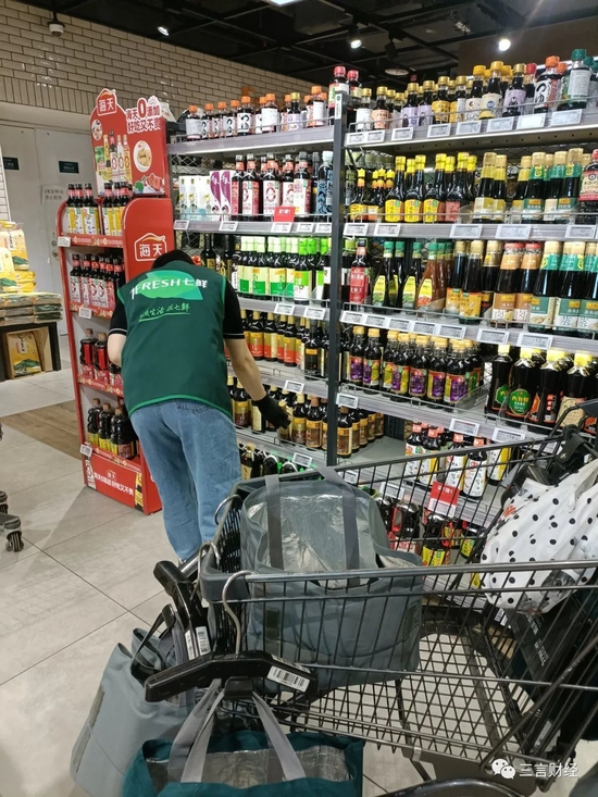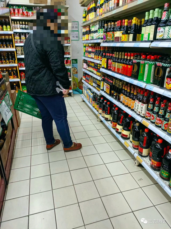 三言财经17:15进入这家超市,17:45离开。30分钟,只有1个买千禾的,1个专门看海天配料表的。
