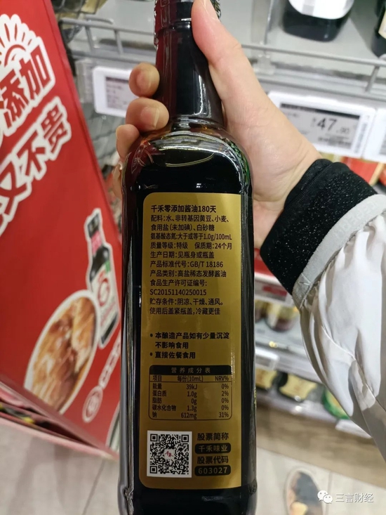 而这款500ml的千禾零添加380酱油,售价为26.9元/瓶。
