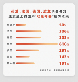 速卖通数据显示,荷兰、法国、德国、波兰消费者对取暖器、暖脚宝、电热围巾等“保暖神器”最为依赖。在速卖通平台上,电热毯卖到了50欧元,几乎是国内价格的3~4倍。