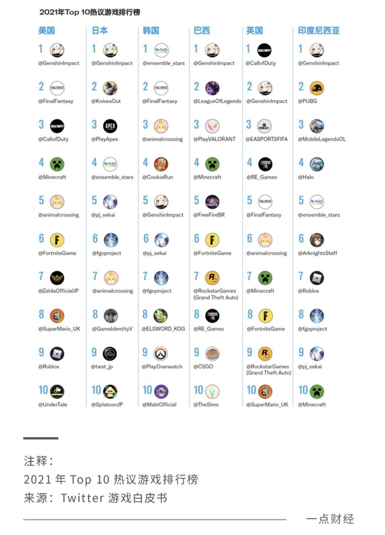 如米哈游出品的现象级游戏《原神》的高光表现一骑绝尘,其在2020年上线后便收获多个市场的好评,成为去年唯一一款同时入围六大热门地区市场排行榜前十的游戏(美国、日本、韩国、巴西、英国和印度尼西亚)。