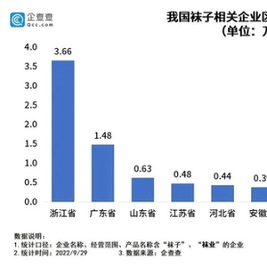 截至2022年9月29日,浙江袜企数量排在全国第一。/企查查