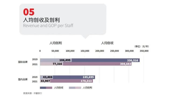 仲量联行发布的《酒店行业白皮书》显示:国际品牌酒店的经营毛利率,已经从2019年的23%,下降到了2021年的20%;而其人均创利能力,也从2019年的人均106495元,下降到了2021年的77316元。经营压力之下,国际大品牌酒店,选择了降价的经营策略。