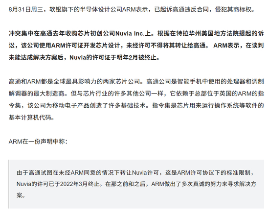 ARM 起诉了高通和 NUVIA ,控诉这两家公司违反许可协议,侵犯商标权,并且要求高通销毁根据 NUVIA 从 ARM 那边搞来授权做的设计。。。