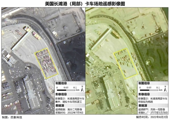 2022年8月3日,一篇《物流“罢工之夏”》的文章,让人们看到欧美主要港口的历史性拥堵。在文章中,四象科技根据卫星遥感影像监测结果,统计了2022年5~7月欧美主要港口船只数量,以及港口集装箱堆放面积,为身处全球产业链的中国企业的商业决策提供数据参考。
