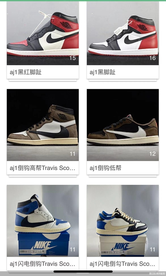 微商Bingo在朋友圈销售“莆田鞋”已经很多年,为了能更清晰地区分各种成本的鞋子售价,Bingo用一款AJ1女款高帮为例进行解说。一款AJ1女款高帮“纯原”版价格为580元,“公司级”版为480元,“真标”版为380元,“通货”价格为260元。匡威经典帆布鞋1970s“纯原”260元,“公司级”220元,真标级别180元。