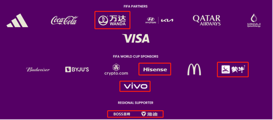 11月21日零点,卡塔尔世界杯首场比赛卡塔尔vs厄瓜多尔开踢,绿茵场周围LED广告屏出现了万达、海信、蒙牛、vivo、雅迪和BOSS直聘等中国企业的身影。其中,万达是国际足联合作伙伴,vivo延续上届,连续两届作为世界杯全球官方赞助商。海信与世界杯结缘更早,2006年,“海信未来发展,大头在海外”被正式确立为海信集团的国际化战略。随后,海信大力发展体育营销。BOSS直聘是本届世界杯亚太区域的官方赞助商,还冠名赞助了央视世界杯的直播。而上一届的另外两家区域赞助商——帝牌(男装)和指点艺境(科技)没有续约。