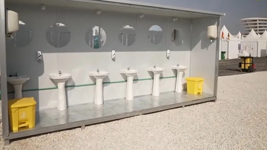卡塔尔世界杯的集装箱球迷村。设置有地铁站、公交车站、公共看球广场、临时餐厅、便利店等设施来保障球迷的交通和生活。