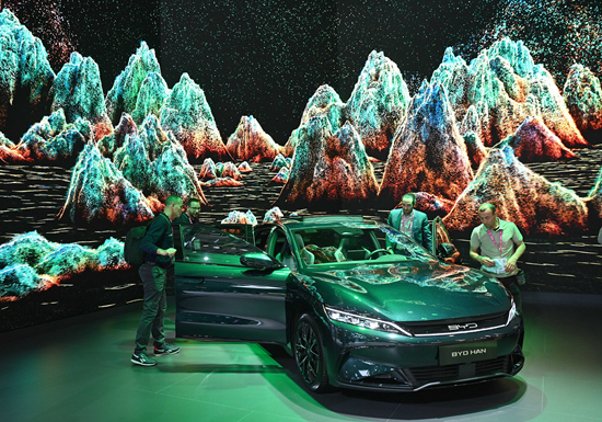 今年1-10月,汽车企业出口245.6万辆,同比增长54.1%。其中,新能源汽车出口49.9万辆,同比增长96.7%。与之前我国燃油汽车主要出口至亚太、拉美、中东等市场不同,新能源汽车主要出口至欧洲等发达汽车市场,同时产品溢价能力得到显著提升。图为比亚迪亮相2022年巴黎车展。视觉中国供图